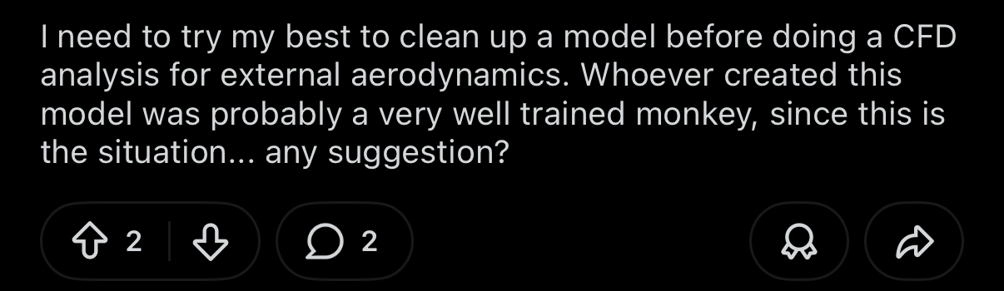 While Reddit isn’t a platform I spend much time on, every so often I’ll jump on at the end of the night and scroll through a few communities relevant to my interests and work. One of them is the CFD community. While I don’t add much value there myself, it’s an important way for me to stay up to date on the industry, the questions people are asking, and the challenges they’re facing.