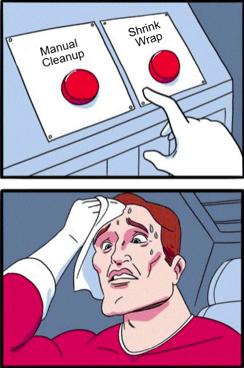 Probably leaving that person stuck like the Daily Struggle meme, having to decide whether to spend more time on manual cleanup or shrink wrapping.